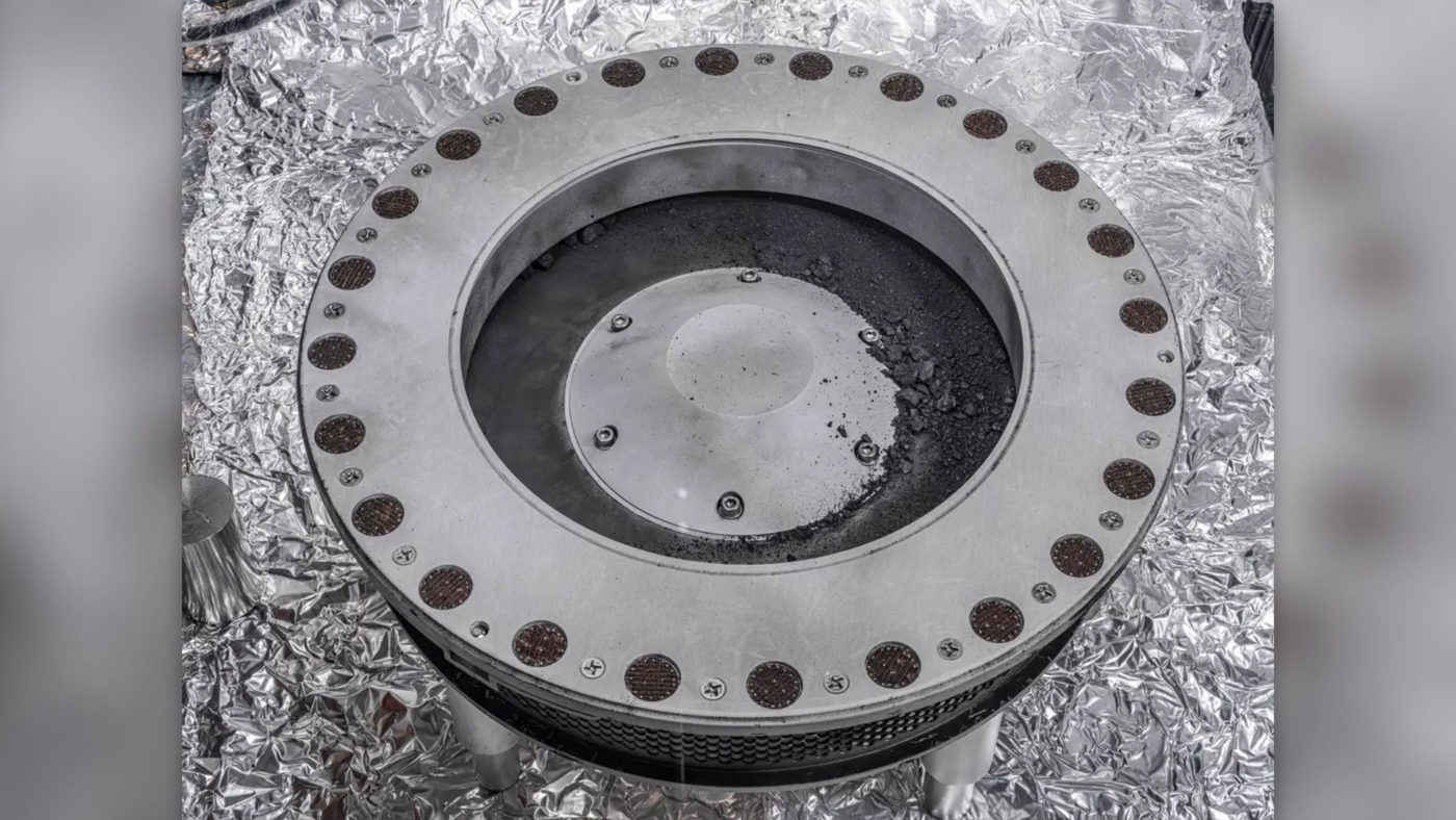 К сожалению, два неисправных крепежных элемента не позволяют специалистам снять крышку и получить доступ к большей части образца, все еще находящегося в головке коллектора. Чтобы обойти эту проблему, они используют пинцет, чтобы извлечь крошечные камни через частично открытую крышку. На данный момент это позволило получить 70,3 г собранного материала, что превышает первоначально запланированные 60 г.