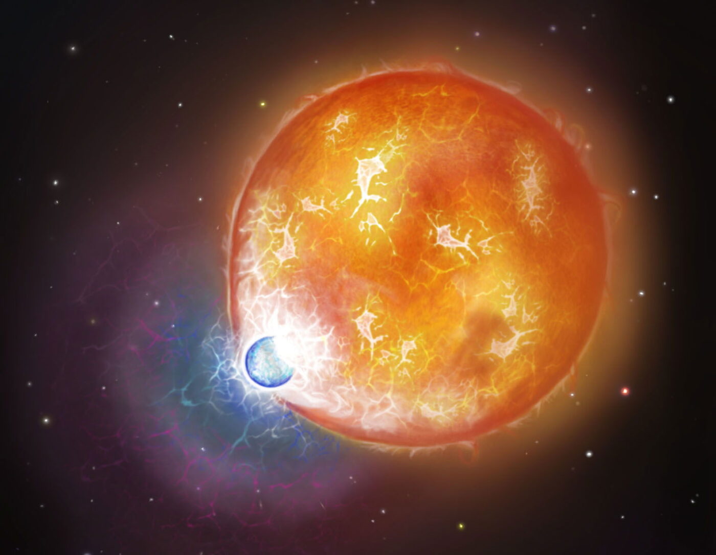 В типичных белых карликах толстые слои водорода и гелия препятствуют выходу углерода на поверхность. Однако в данном случае присутствие углерода означает, что внешние слои были почти полностью уничтожены во время звездного столкновения, что привело к смешению слоев.