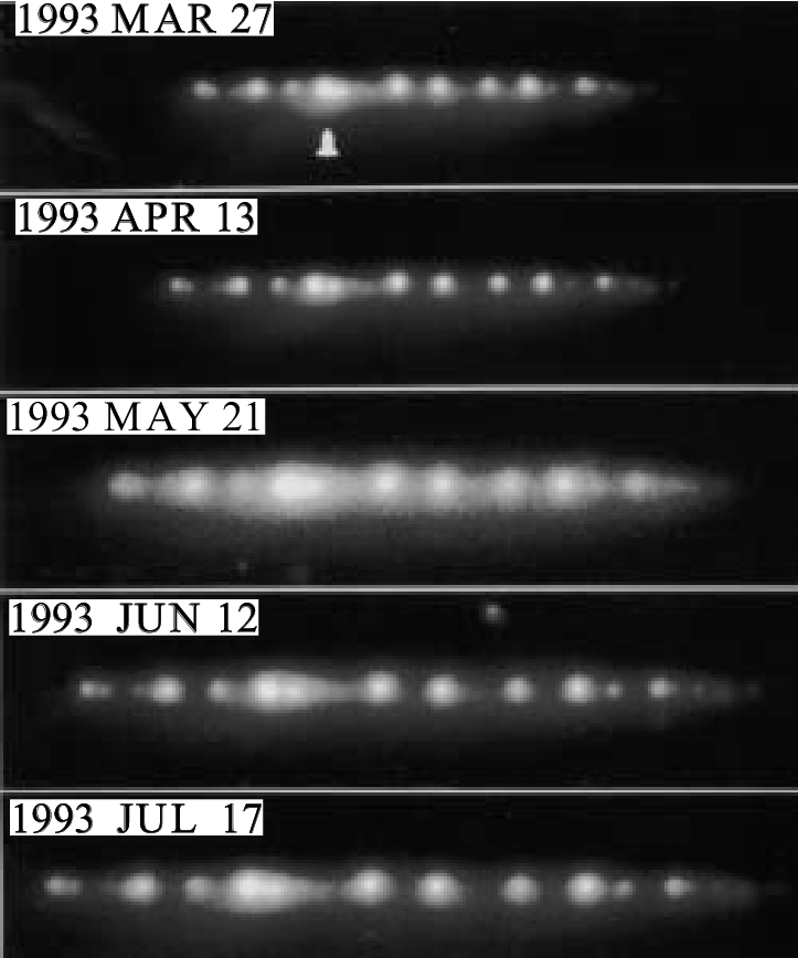 Детальный анализ последующих изображений показал, что комета состояла как минимум из 21 отдельного фрагмента, расположенных в форме, напоминающей небесную «нитку жемчуга».