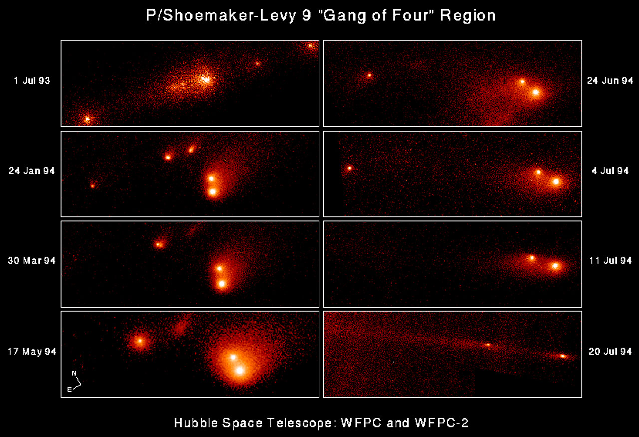 Столкновение различных фрагментов кометы с атмосферой Юпитера произошло между 16 и 22 июля 1994 года и стало одним из самых значительных и зрелищных астрономических событий за всю историю наблюдений.