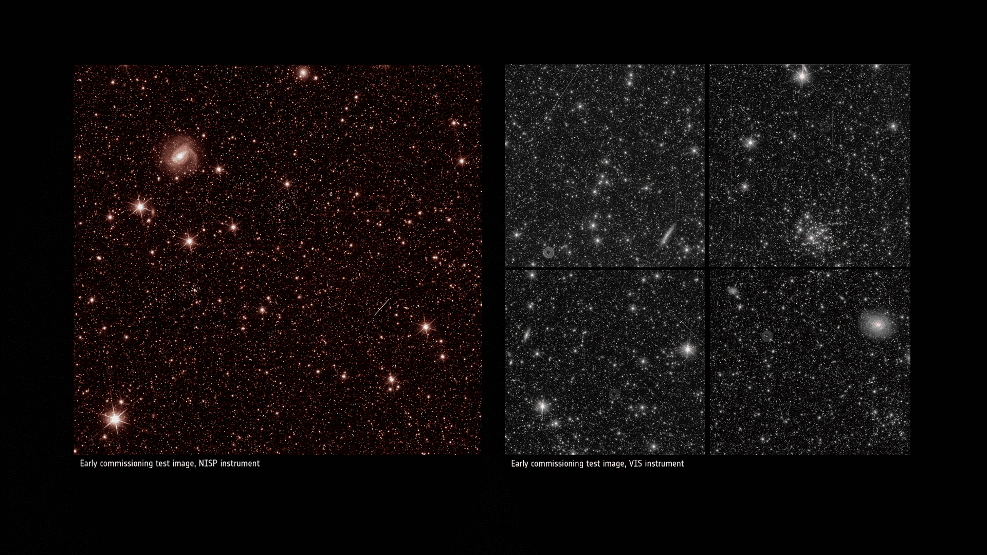 Поскольку это тестовые снимки, сделанные для проверки приборов и изучения возможностей дальнейшей оптимизации и доработки Евклида, мы видим в основном необработанные снимки. Остаются некоторые нежелательные артефакты, например, пересечение космических лучей, особенно заметное на изображении VIS.