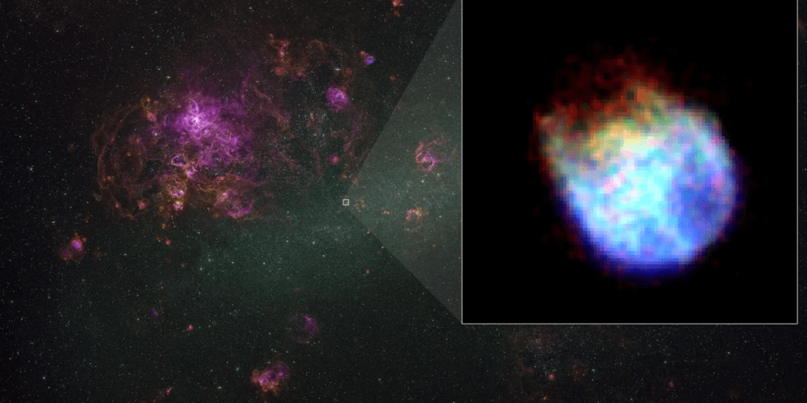 Команда миссии использовала Resolve для изучения N132D, остатка сверхновой и одного из самых ярких источников рентгеновского излучения в Большом Магеллановом Облаке — карликовой галактике, расположенной на расстоянии около 160 000 световых лет в южном созвездии Золотая Рыба. Возраст расширяющегося остатка сверхновой оценивается примерно в 3 000 лет, он образовался, когда у звезды, масса которой в 15 раз больше массы Солнца, закончилось топливо, она разрушилась и взорвалась.