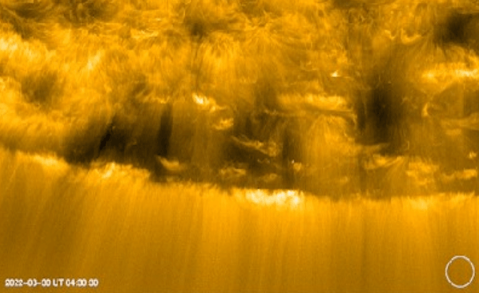 Ниже представлен видеоролик, созданный на основе наблюдений Solar Orbiter 30 марта 2022 г. в период с 04:30 до 04:55 UTC, на котором показана корональная дыра вблизи южного полюса Солнца.