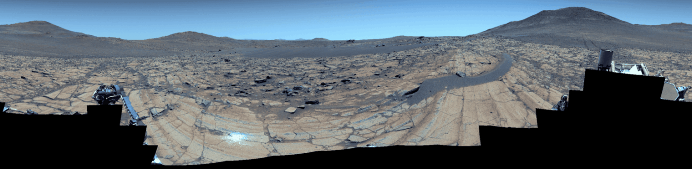 В центре мозаики заметен крупный светлый валун, лежащий на гребне темного песка примерно в 4 метрах от марсохода. Это так называемая «плавающая» порода — фрагмент, который сформировался не на этом месте, а был перенесен сюда природными процессами. Пока неизвестно, был ли это ветер, вода или обвал, но ученые предполагают, что камень оказался здесь до образования песчаного гребня.