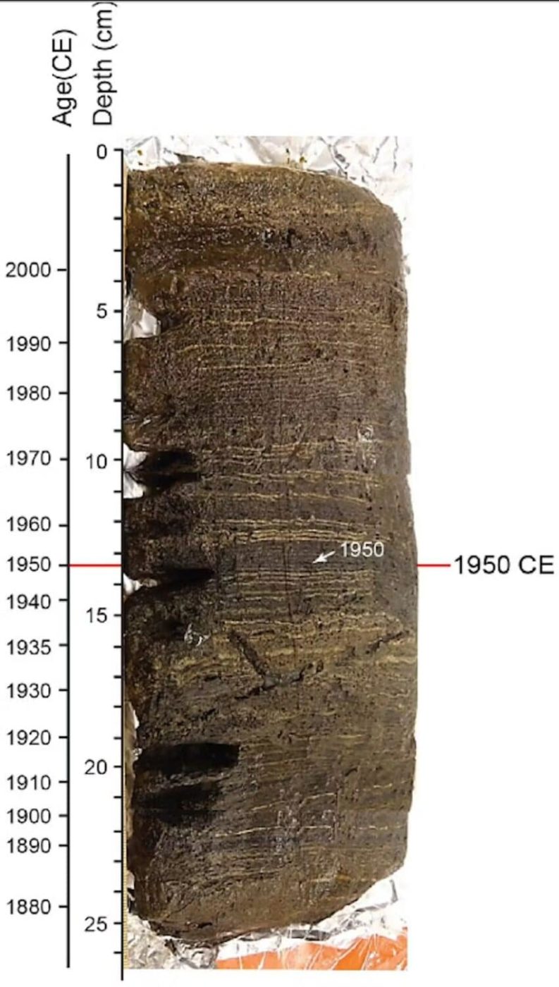 Толщина осадочных слоев, взятых из озера Кроуфорд (предложенного в качестве опорной точки для GSSP), составляет около пятнадцати сантиметров. Кальцитовые слои, составляющие их основу, датируются летом 1950 года и показывают быстрое увеличение содержания плутония. Этот сигнал сопровождается увеличением углеродистых частиц, а также уменьшением количества пыльцы вяза и заменой диатомей на особый вид водорослей. Эти элементы указывают на серьезные изменения в экосистеме, ускорившиеся после окончания Второй мировой войны.