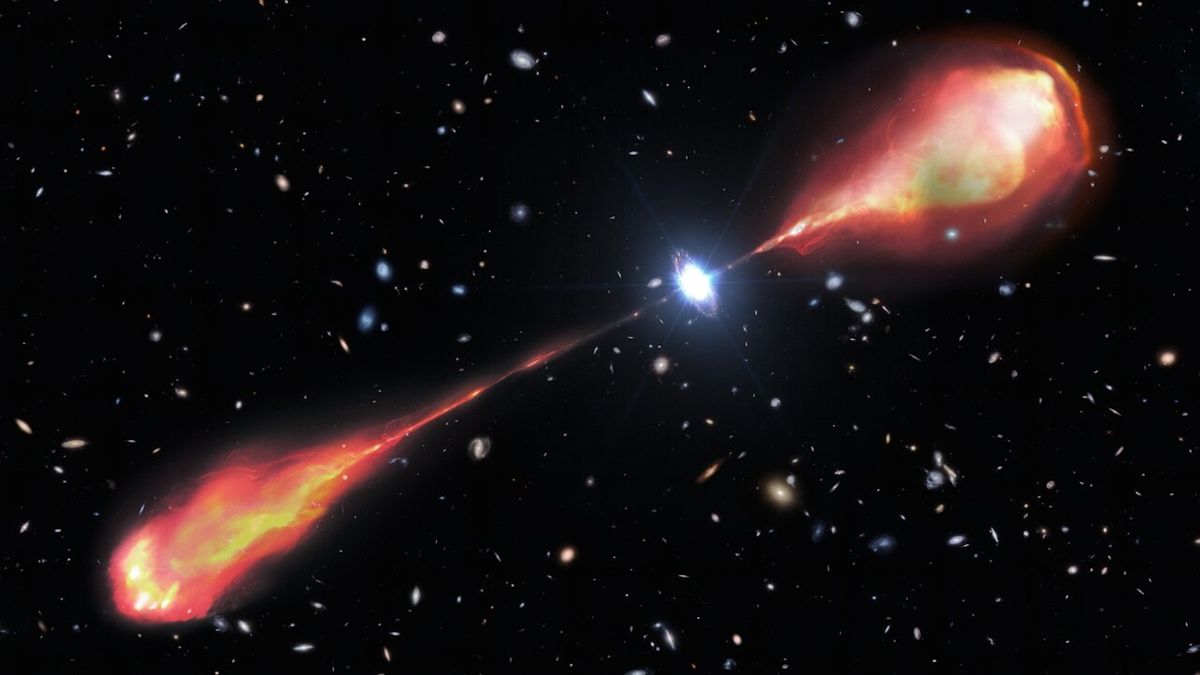 Ученые обнаружили гигантский джет черной дыры, который образовался, когда возраст Вселенной составлял менее 1,2 миллиарда лет, или около 9% от ее текущего возраста. Этот джет простирается на 200 000 световых лет, что вдвое превышает ширину Млечного Пути, что делает его самым большим джетом черной дыры, когда-либо наблюдаемым в столь раннюю эпоху.