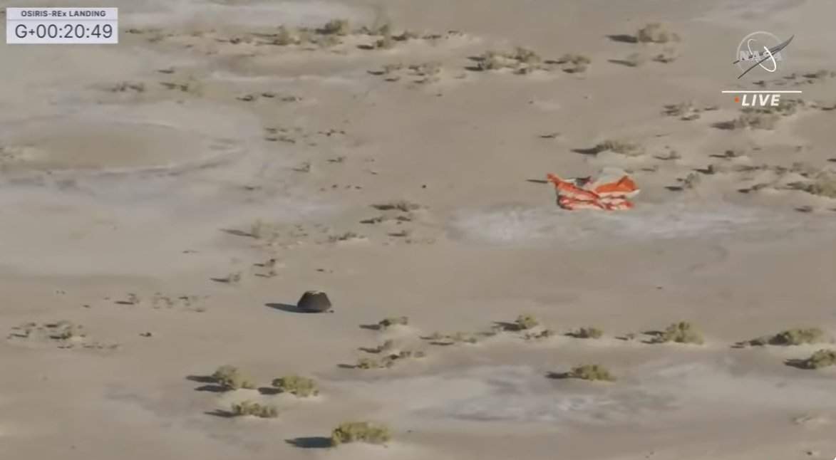 В 17:52 по московскому времени капсула космического аппарата OSIRIS-REx совершила посадку после семи лет пребывания в космосе. На борту капсулы находились образцы породы и пыли, собранные с поверхности астероида Бенну. Сбор этих образцов ознаменовал завершение основной миссии зонда, который теперь продолжает свой путь к другому астероиду — Апофису.