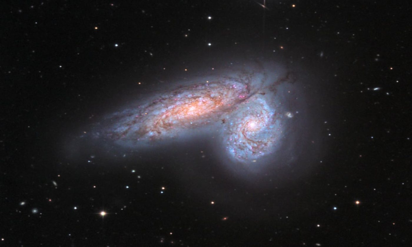 Странная пара галактик может служить первым доказательством существования «космических струн» — загадочных и гипотетических структур, рожденных фазовым переходом в результате нарушения симметрии в ранней Вселенной. Одна из двух галактик, о которых идет речь, на самом деле является отражением другой — оптический эффект, вызванный гравитационной линзой, которая сама порождена космической струной.