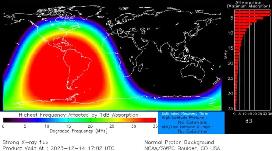 Вспышка 14 декабря произошла из особенно активного комплекса солнечных пятен (AR 3514), расположенного в северо-западной области солнечного диска. Она имела рейтинг X2.8 и стала самой интенсивной из зарегистрированных с сентября 2017 года. Оно вызвало волну радиации, которая обрушилась на Землю и нарушила ее магнитное поле над Южной Америкой. Извержение класса М (второе по мощности) предшествовало ему на несколько часов.