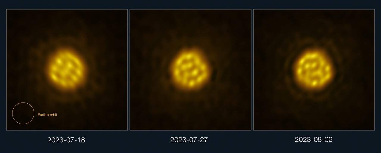 Теперь астрономы впервые получили изображения звезды, которая не является Солнцем, с достаточной детализацией, чтобы проследить движение газа, образующего пузыри на ее поверхности. Изображения были получены в период с июля по август 2023 года радиотелескопом ALMA (Atacama Large Millimeter/submillimeter Array) ESO в Чили.