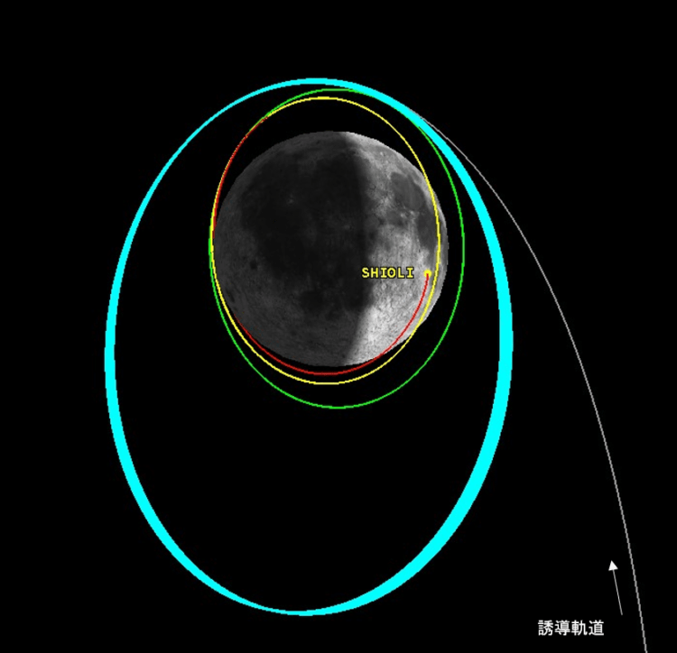 SLIM вышел на лунную орбиту 25 декабря в 10:51 по московскому времени. Сейчас он находится на расстоянии 4000 км от аполуниума (самой удаленной от Луны точки орбиты) и 600 км от перилуниума (самой близкой точки). Эта траектория показана синим цветом на изображении ниже.