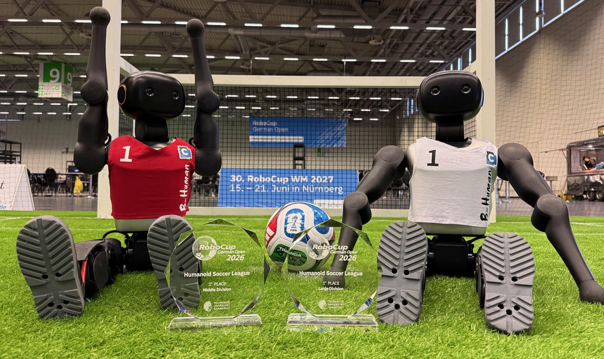 Команда роботов-футболистов B-Human, представляющая Бременский университет и Немецкий исследовательский центр искусственного интеллекта, подтвердила свой чемпионский статус, одержав победу сразу в двух дивизионах на прошедшем в Кельне чемпионате Humanoid Soccer League. Турнир, объединивший бывшие лиги RoboCup, собрал участников в трех категориях — малой, средней и большой, которые различаются размером и весом ботов. B-Human уверенно выиграла и в среднем, и в большом дивизионах, впервые использовав человекоподобных роботов Booster K1 компании Booster Robotics.