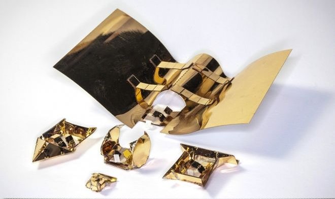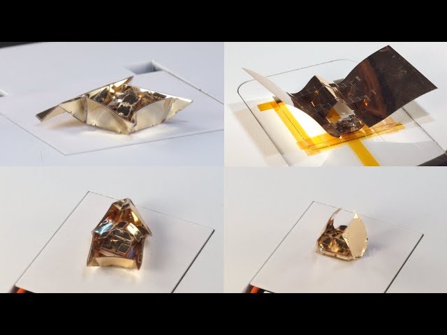 Крохотный куб снабжен электромагнитными устройствами, которые позволяют ему кувыркаться в управляющем магнитном поле в конкретном направлении. Добравшись до цели, робот может «завернуться» в тонкий и гибкий лист фольги, соорудив себе подобие экзоскелета. Это придает ему новые свойства — например, плавучесть. А при должном уровне развития технологии он может трансформироваться в отвертку, сверло, маленький планер или транспортную платформу для перевозки грузов.