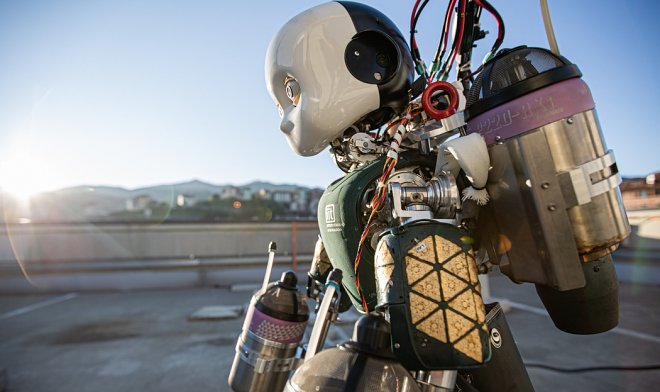 Исследователи из Итальянского технологического института разработали систему оценки параметров полета для робота гуманоидного типа, который умеет использовать реактивные двигатели. Эта задача в разы сложнее, чем создать реактивный ранец для человека – робот понятия не имеет, как балансировать свою конструкцию в полете. Но при этом должен функционировать не только в соседстве с очень горячей струей газа, но и двигаться на скоростях до 1800 км/ч, а потом еще и работать на местности.