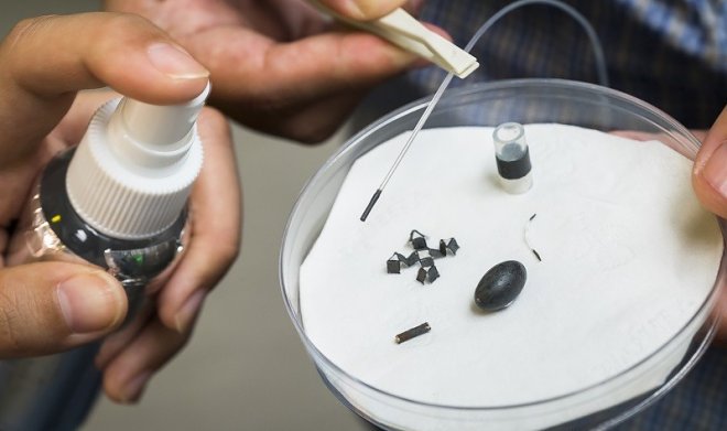 Ученые из Университета Гонконга наглядно доказали, что робот – это совсем не обязательно сложное механическое устройство, выполняющее определенные действия. На самом деле, в робота можно превратить любой небольшой предмет, нанеся на него специальное магнитное покрытие – M-spray, представляющее собой липкую смесь поливинилового спирта, глютена и частиц железа.