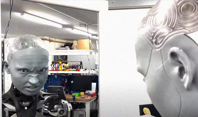 Британская компания Engineered Arts опубликовала новое видео с участием своего нашумевшего робота-гуманоида Ameca. В нем машина изображает знакомство с зеркалом и пытается строить различные гримасы, отталкиваясь от восприятия своего отражения. Налицо прогресс в имитации человеческой мимики – в сравнении с прошлыми видео Ameca проявляет меньше эмоций, зато гораздо активнее использует возможность менять выражение своей физиономии.