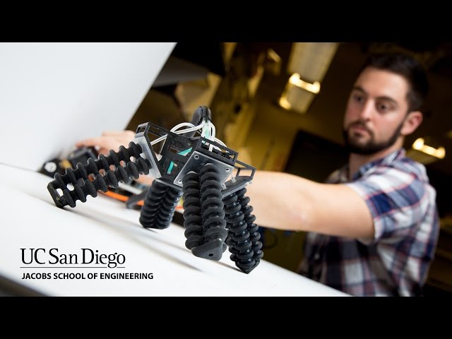 Специалисты-робототехники Калифорнийского университета разработали робота с мягкими конечностями, уверенно себя чувствующего не только в лаборатории, но и в труднопроходимой местности. По словам аспиранта инженерной школы при Калифорнийском университете Дилана Дротмана, получился робот, который передвигается, гибко переставляя конечности, что позволяет ему по-новому преодолевать препятствия.