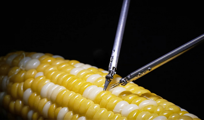 Sony продемонстрировала возможности своего нового робота-хирурга, который сумел зашить крошечный разрез в зернышке кукурузы. Новинка способна в автоматическом режиме переключаться между нужными инструментами и уже протестирована на животных. Заявлено, что с помощью этого робота можно проводить операции на нервах и сосудах диаметром меньше 1 миллиметра.