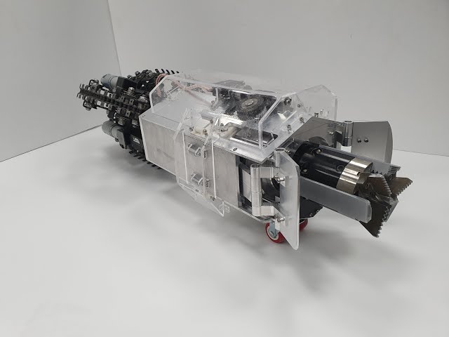 Размеры робота 84 х 25 см, вес 26 кг. Резцы ему заменяет устройство, напоминающее бур. По мере того, как оно вращается, измельчая почву, его складные зубчатые лезвия выдвигаются наружу, проделывая проход, диаметр которого превышает диаметр корпуса робота. Затем выдвигаются два шарнирных металлических фланца и, подобно лапам крота, отбрасывают взрыхленный грунт. Сверло и фланцы работают попеременно, периодически сменяя друг друга.