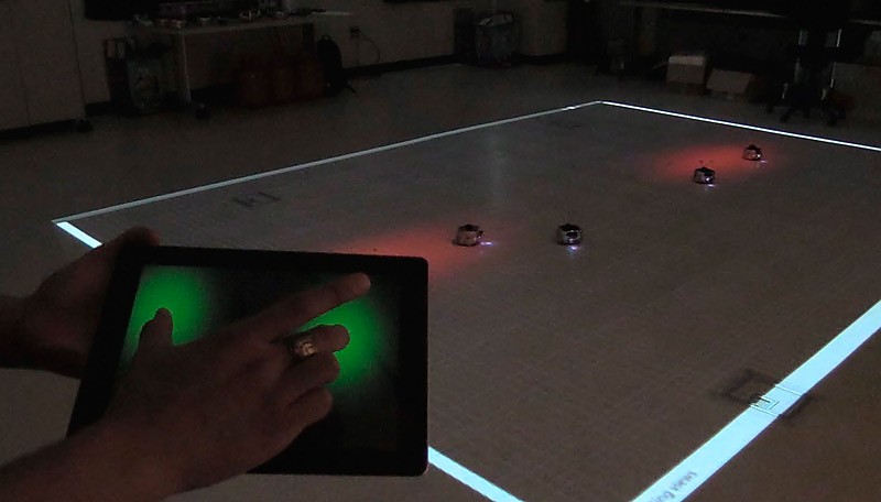 Группа исследователей Технологического института Джорджии создала на основе планшета систему, позволяющую управлять группой роботов. В качестве инструмента управления используется луч света на полу. «Рой» роботов, находящихся в постоянном общении друг с другом, направляются на необходимый участок.