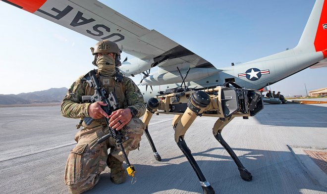 В будущем четвероногие роботы, оснащенные системами обработки данных и бортовыми компьютерами, будут обеспечивать связь между солдатами в боевых условиях, создавать карты окружающей местности и предупреждать операторов о внезапно возникших угрозах.