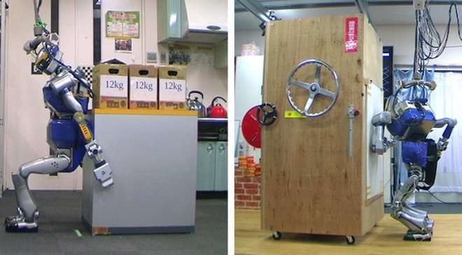 Исследователи из токийского университета создали робота HRP-2, который может двигать тяжёлые предметы, используя для этого собственный вес. HRP-2 способен анализировать объект и использовать различные методы приложения силы для его перемещения, учитывая, насколько он продвинулся. Для передвижения тяжёлых предметов робот может упираться в него плечом или всей поверхностью спины, одновременно отталкиваясь от пола ногами и удерживая равновесие.