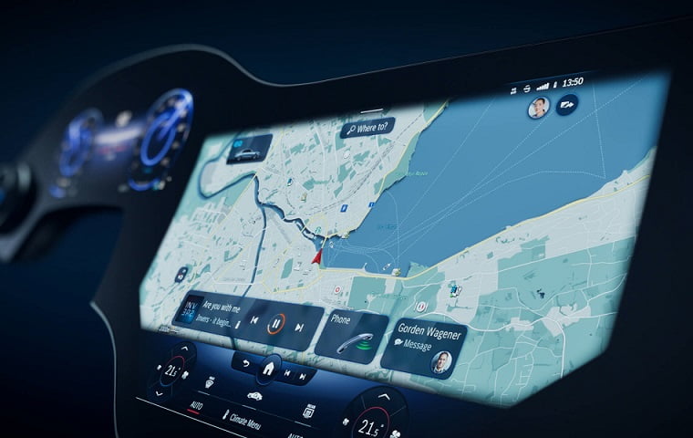 Немецкий автопроизводитель представил гигантский 56-дюймовый сенсорный экран с диагональю от стойки до стойки, который дебютирует в электрическом седане EQS. Hyperscreen является центральным элементом информационно-развлекательной системы MBUX второго поколения автопроизводителя, в которой отсутствуют физические кнопки, а взаимодействие пользователя с автомобилем осуществляется при помощи голоса и сенсорной панели.