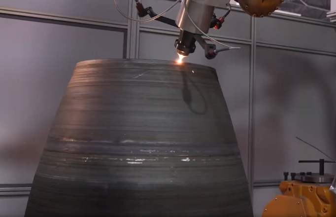 В настоящее время эта технология проходит испытания для подтверждения ее преимуществ. Исследователи разработали насадку диаметром один метр и высотой 0,9 метра со встроенными охлаждающими каналами. Процесс включает в себя впрыскивание металлического порошка в емкость с расплавленным металлом, нагреваемым лазером. После этого печатающая головка, прикрепленная к манипулятору робота, движется по заранее заданному шаблону. Роботизированный манипулятор производит деталь слой за слоем с помощью оптического лазера для затвердевания выдуваемого порошка.