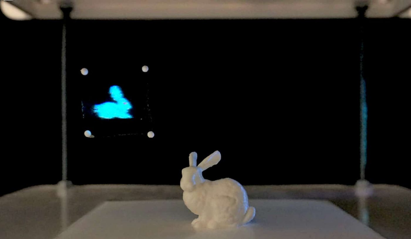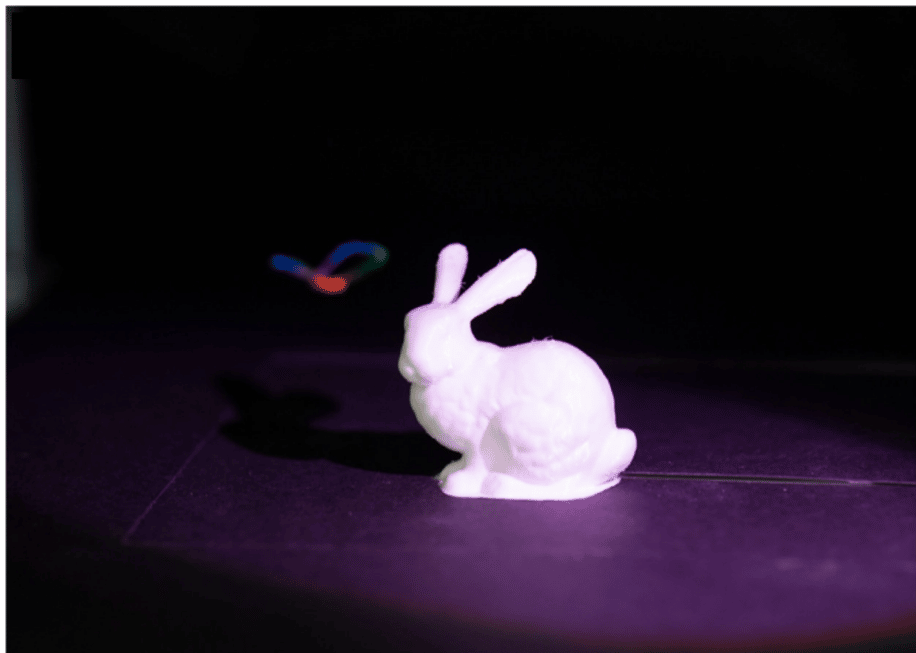 На изображениях их экспериментов можно увидеть 3D-печатную статуэтку кролика, увенчанную трехмерной проекцией того же животного, парящего в воздухе. Устройство может показаться безобидным, но это небольшое технологическое достижение. Не совсем из-за самой проекции или даже из-за того, что она левитирует. На самом деле, технология, позволяющая сделать этот удивительный показ, уже существовала. Настоящая новизна заключается… в наличии статуэтки кролика. Это странное заявление заслуживает некоторого объяснения!