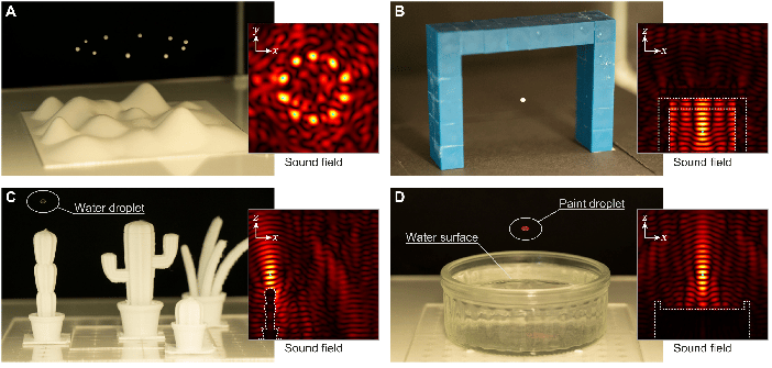 Благодаря этому прорыву акустическую левитацию можно использовать в тесных помещениях или на неровных поверхностях. Ученые использовали 256 небольших корпусов, расположенных в очень точной сетке, для получения ультразвуковых волн, настроенных на нужную операцию. Когда результирующие звуковые волны сталкиваются с препятствием, алгоритм очень быстро перестраивает их форму, чтобы они сохранили свою целостность. «Наша техника включает в себя двухступенчатую модель рассеяния и упрощенный алгоритм левитации, которые вместе могут выполнять более 10 000 обновлений в секунду для создания объемных изображений над и под статичными объектами, рассеивающими звук«, — говорят ученые.