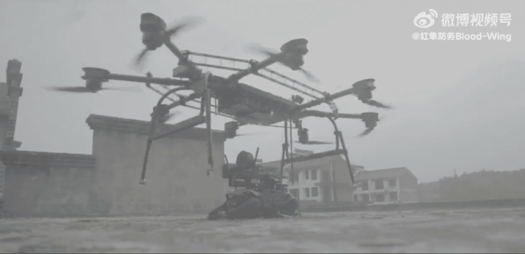 Минутное видео было первоначально размещено на китайском сайте микроблогов Weibo пользователем, связанным или представляющим местную оборонную компанию, которая, как сообщается, разработала беспилотник, использованный для развертывания «робособаки», Kestrel Defense Blood-Wing.