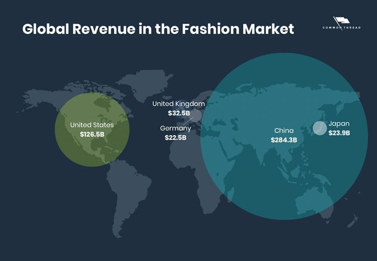 Сегодня мировое потребление модных товаров сильно смещено в сторону Китая, где продажи модных товаров еще в 2020 году составили $284,3 млрд, что превышает продажи в 4-х других странах вместе взятых.