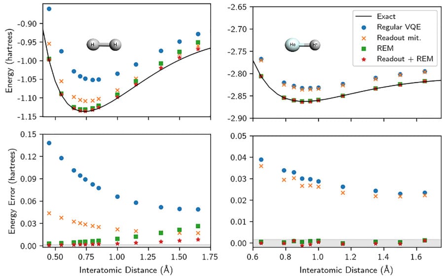 Их метод, названный «Смягчение ошибок эталонного состояния» (REM), применим в широком диапазоне интенсивности шума, недорог и может быть совмещен с другими методами смягчения, говорит команда. Он основан на том, что они называют «эталонным состоянием», которое представляет собой более простое описание молекулы, чем исходная задача, решаемая квантовым компьютером. Это эталонное состояние получается путем решения одной и той же задачи как на квантовом компьютере, так и на обычном компьютере.