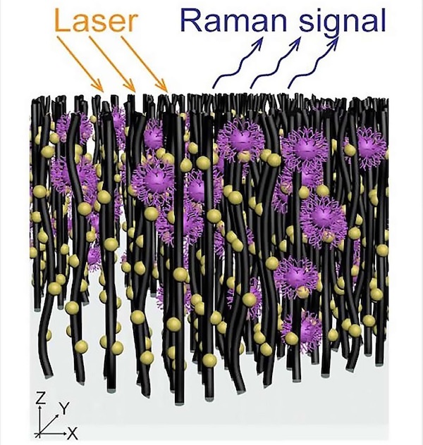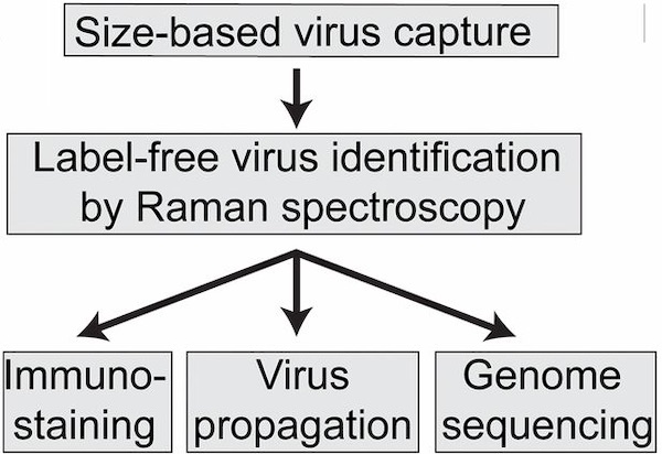 Группа исследователей использовала рамановскую спектроскопию для идентификации вирусов на основе их индивидуальных вибраций. Для идентификации молекул вируса даже в очень низкой концентрации исследователи усилили рамановский сигнал, добавив в устройство наночастицы золота.