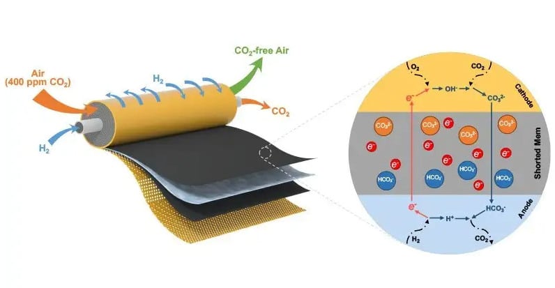 Топливные элементы с гидроксидообменной мембраной в настоящее время изучаются в качестве альтернативы традиционным топливным элементам. Считается, что они более экономичны и экологичны, чем используемые сегодня топливные элементы. Однако они обладают тем недостатком, что чрезвычайно чувствительны к содержанию углекислого газа в воздухе, что снижает их эффективность. После более чем 15 лет исследований группа ученых решила воспользоваться этим препятствием и придумала экономически эффективное решение для извлечения 99% CO2 из воздуха.