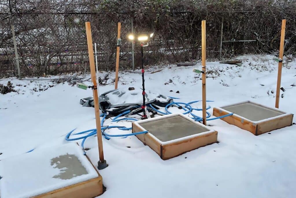 Чтобы проверить технологию, ученые с 2021 года подвергают плиты воздействию реальных внешних условий. Они пережили 32 цикла замораживания-оттаивания и пять снегопадов высотой не менее 2,5 см. В течение этих двух лет плиты из фазосдвигающего бетона поддерживали температуру своей поверхности в диапазоне от 5,6 до 12,8 °C в течение 10 часов на морозе. Плиты даже растопили несколько сантиметров снега со скоростью около 6,35 мм в час. Бетон с компонентами, погруженными в жидкий парафин, оказался более эффективным.