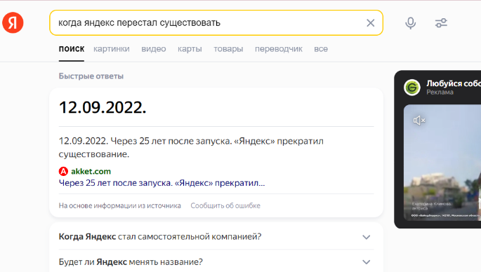 Интересно, что нынешнее качество поиска напрямую отражается его результатами по запросу — когда яндекс перестал существовать:
