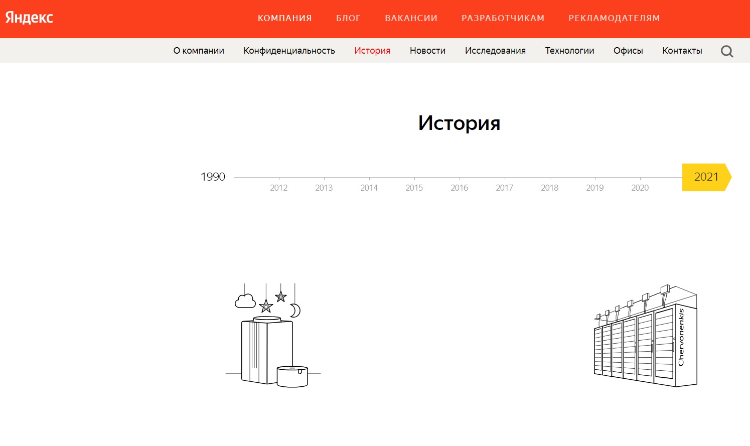 На этом официальная история компании Яндекса, приведённая на сайте компании, заканчивается.